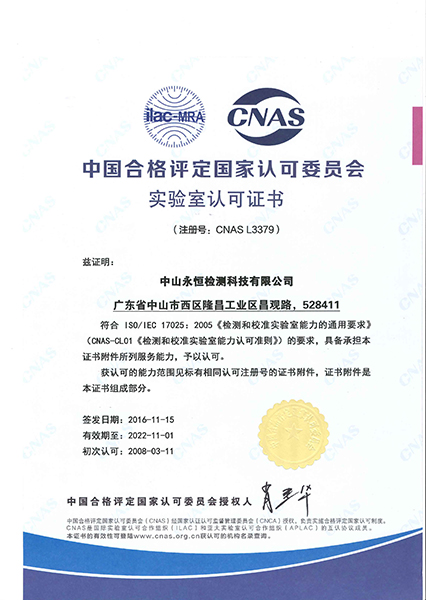 永恒檢測嚴(yán)格按照ISO/IEC 17025建立實(shí)驗(yàn)室管理體系,獲得CMA(國家認(rèn)證認(rèn)可監(jiān)督管理委員會(huì))認(rèn)證及CNAS(中國合格評定國家認(rèn)可委員會(huì))認(rèn)可,所出具的檢測報(bào)告具有法律效力和國際公信力。